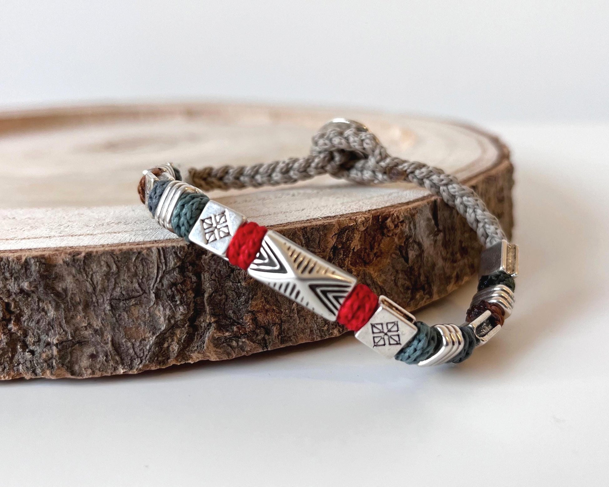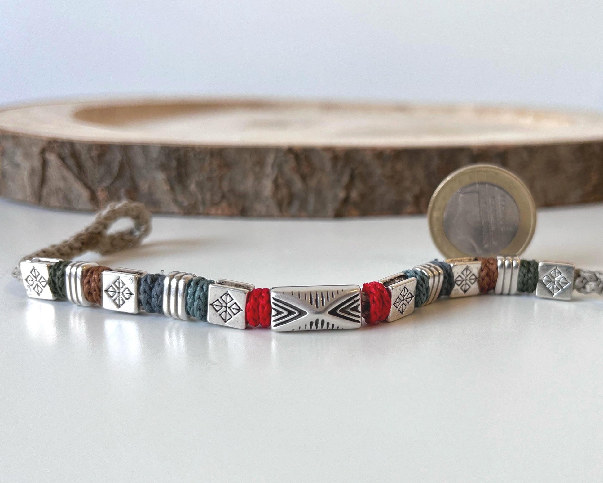 To ręcznie wykonany dodatek unisex, łączący w sobie nowoczesny minimalizm, styl boho oraz etniczny charakter.