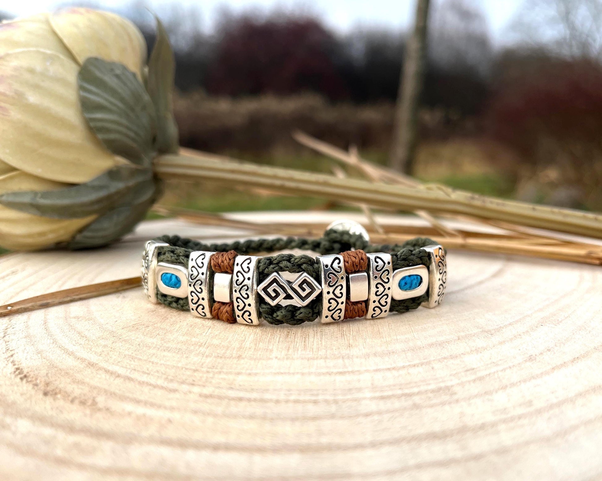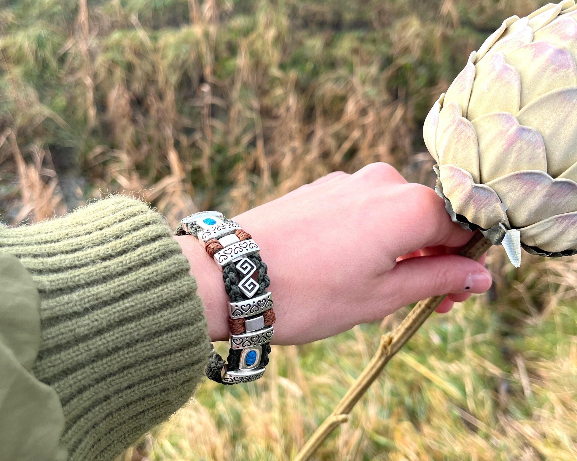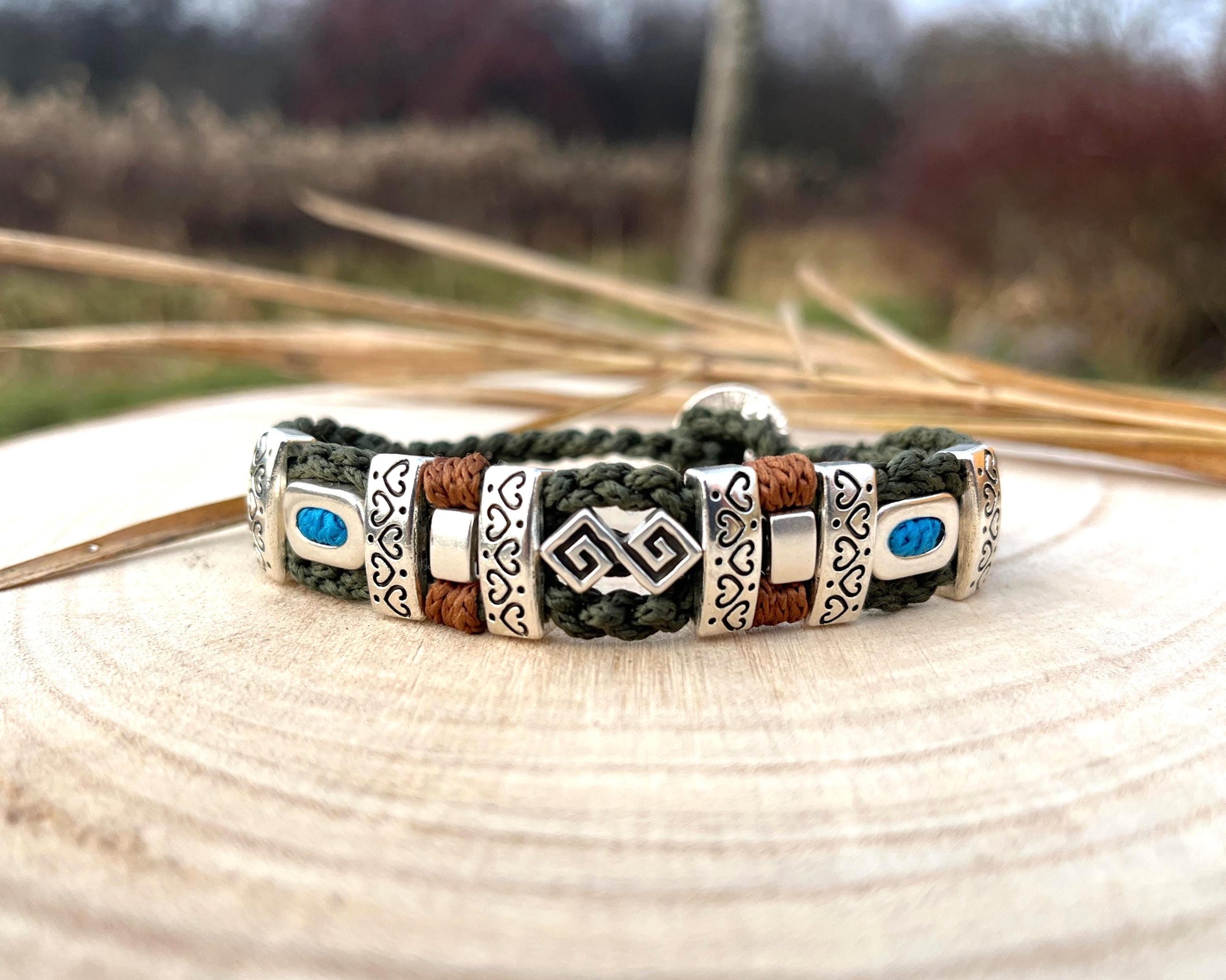 To ręcznie wykonany dodatek unisex, łączący w sobie nowoczesny minimalizm, styl boho oraz etniczny charakter.